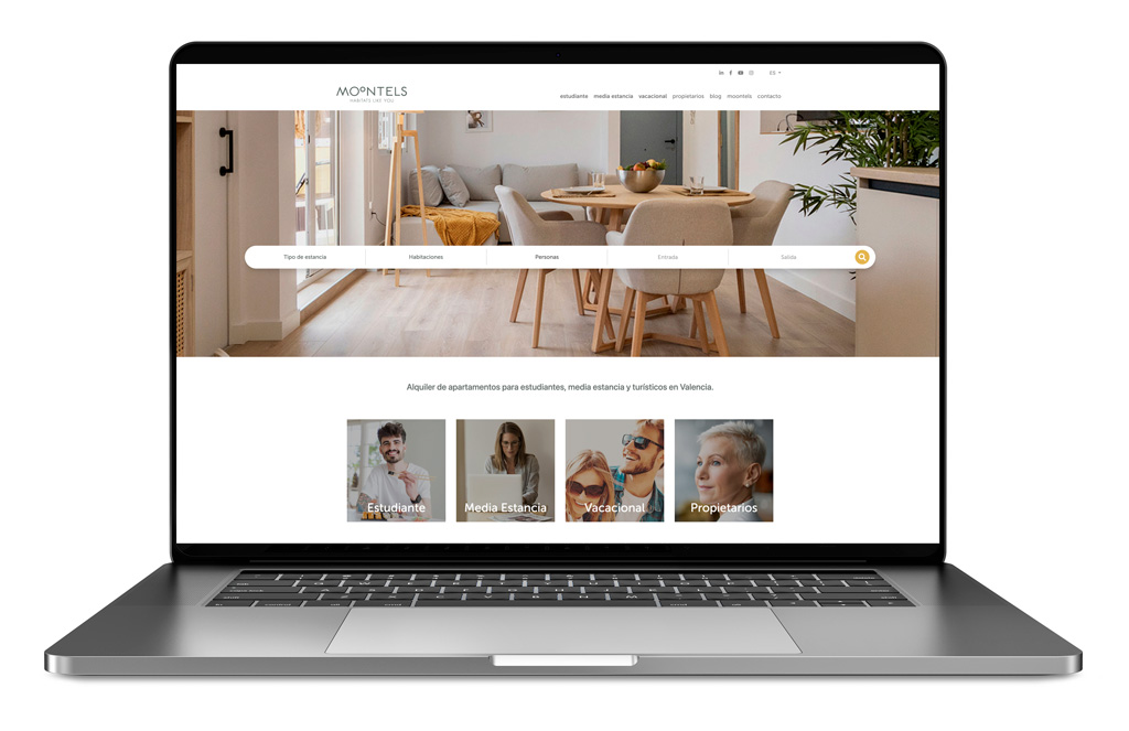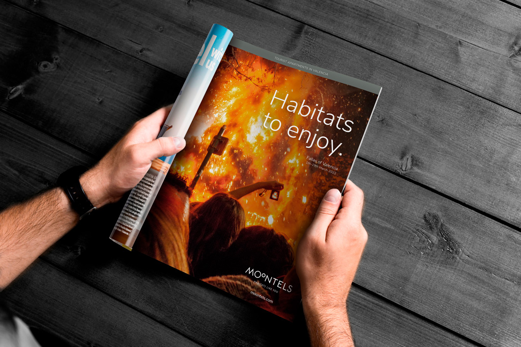Contrayendo los términos moon y hotels creamos un nombre con personalidad inspirado en la expresión popular “dormir a la luna de Valencia” para esta compañía Valenciana que ofrece alojamientos turísticos, de media estancia y para estudiantes.