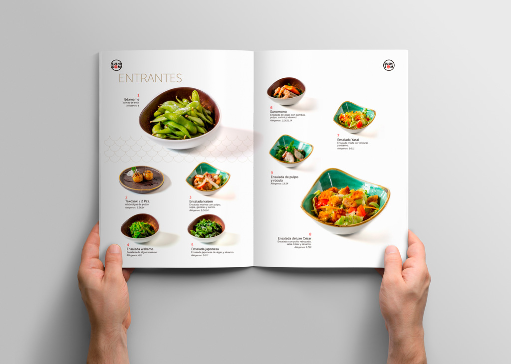 La inspiración para crear la identidad visual de esta cadena de restaurantes asiáticos fue el maki, probablemente la especialidad más conocida de la cocina japonesa.